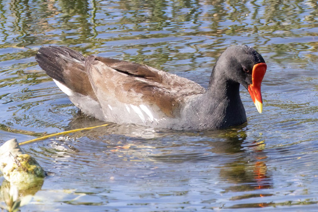 On the way back to the car, we found a Fiery Skipper and a Ceraunus Blue in the small flowers along the road and a Common Gallinule duck in the pond.
