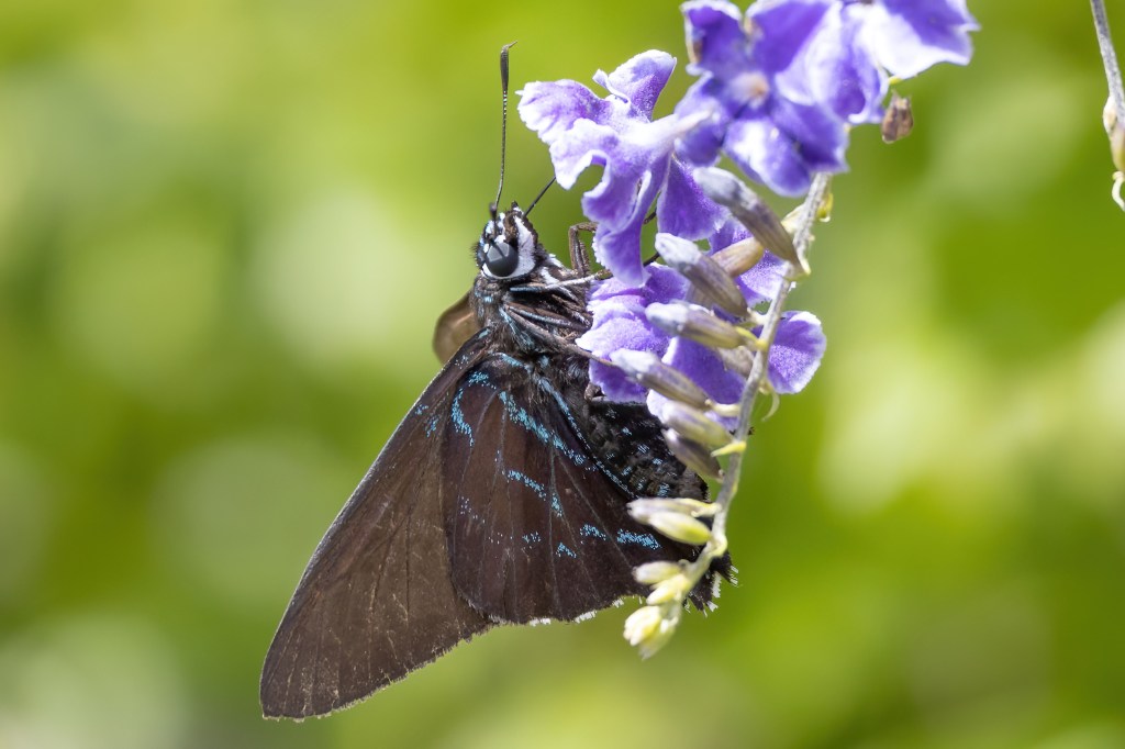 Striking out there, we decided to go to the Manatee Viewing Center in Apollo Beach. We figured if there aren’t any butterflies around, at least we will see a manatee. We barely got out of the parking lot and onto the property when we saw a Mangrove Skipper in the small group of flowers at the entrance! Finally! It wasn’t the BEST looking individual with one wing sort of tattered, but the other wing was nice so the photos I got of that side came out decently. There was also a Fiery Skipper here. As for manatees? None.