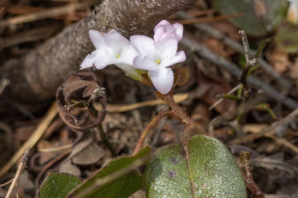 From here we decided to go to Webster Springs Road to check along the gas line at that end in hopes that the wind would be less. On Wester Springs, it wasn’t bad at all but the gas lines in the area were just as bad as the other end. We did manage to get a few Azures there and noticed that the Mayflower is blooming. One of the Azures even struck a pose with it’s wings open for us! This is sort of unusual.