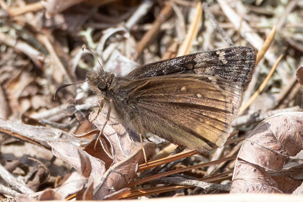 On the way back to the car, we saw some flight pattern going on that finally wasn’t a fly or an Azure. It turned out to be a Juvenal’s Duskywing! It’s nice to see them early like this. We have found that the Doctors Pond area is generally a good place for Duskywings.