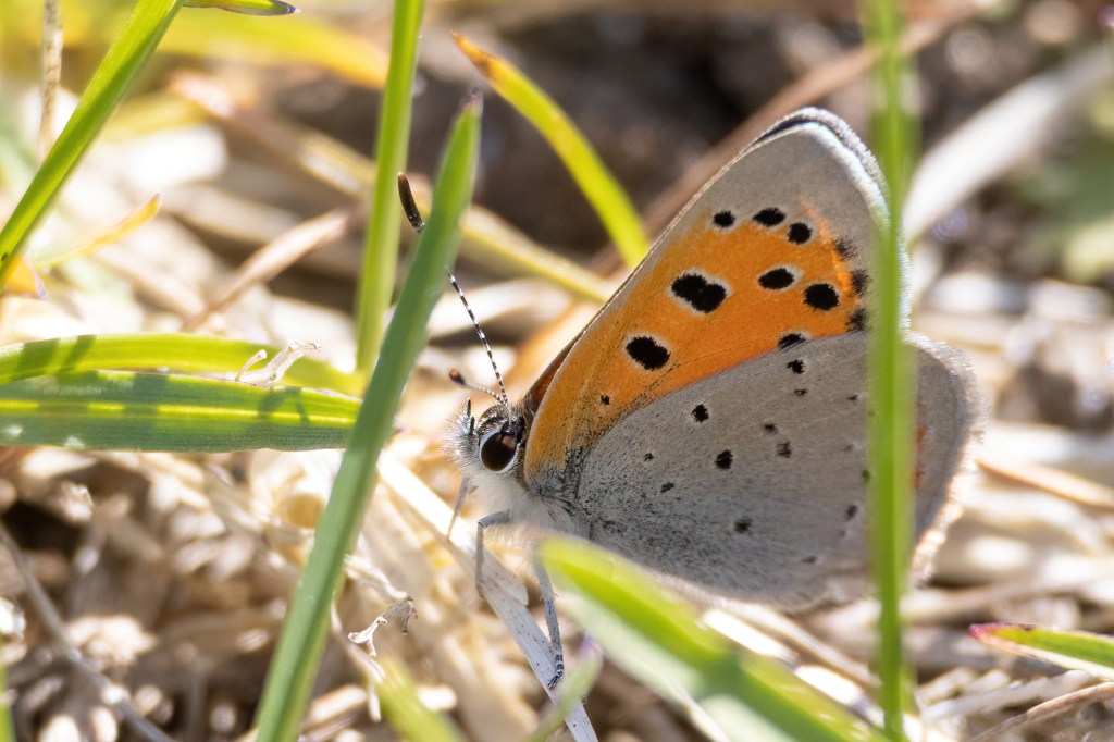 Thinking it may come back, I went in and got the camera. A short while later, I was very surprised to see an American Copper! Not that is is really THAT early for them, but my records over the past 5 years has them only showing up this early in 2022 (also April 24th) and most not until the beginning of May.