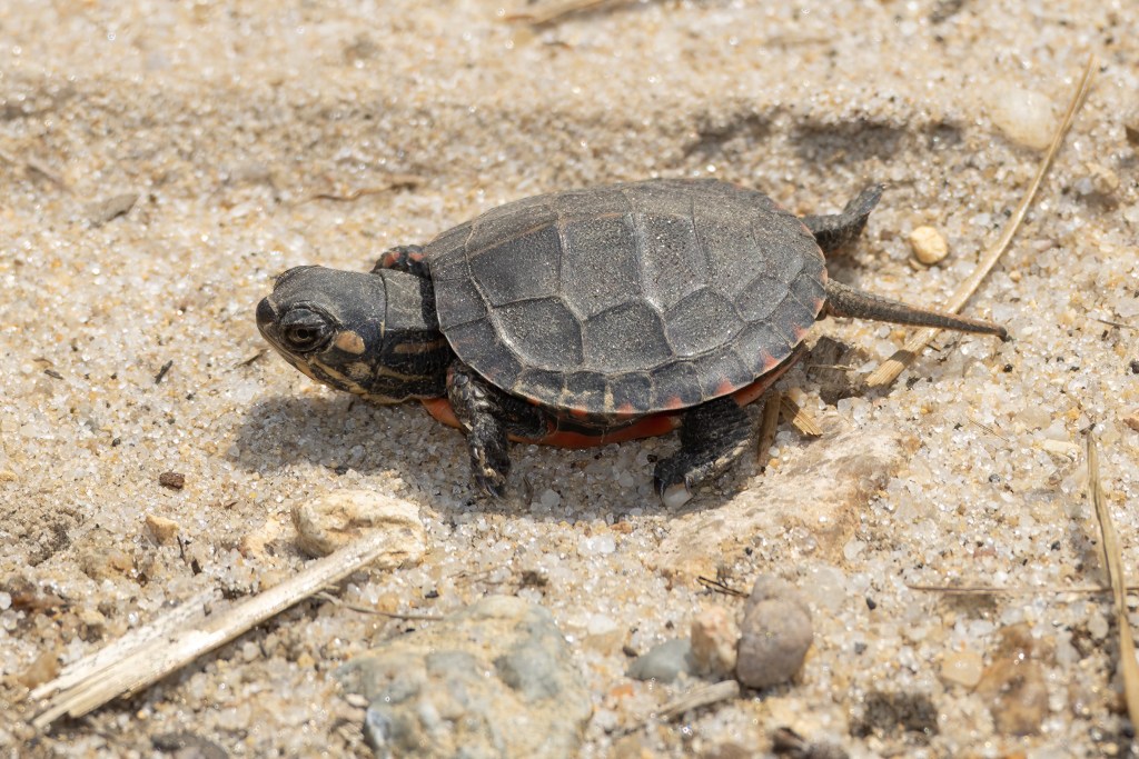 I also went to Doctor’s Pond Road quickly and found one Brown Elfin along with a baby Painted Turtle and a bunch of Six-spotted Tiger Beetles (photo above).