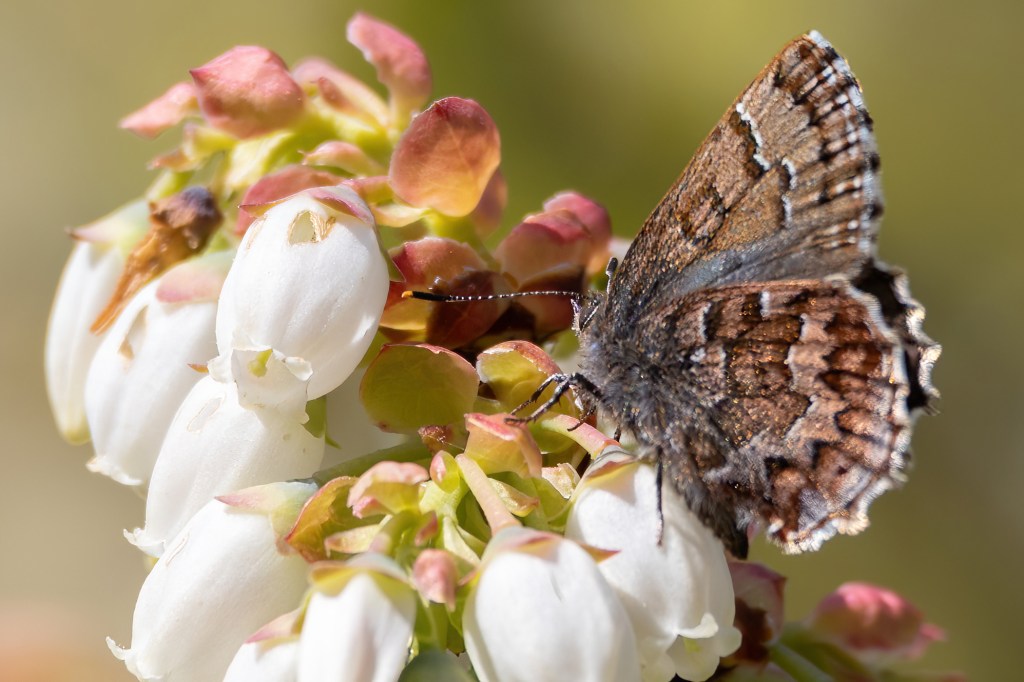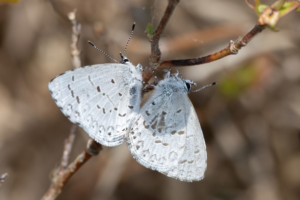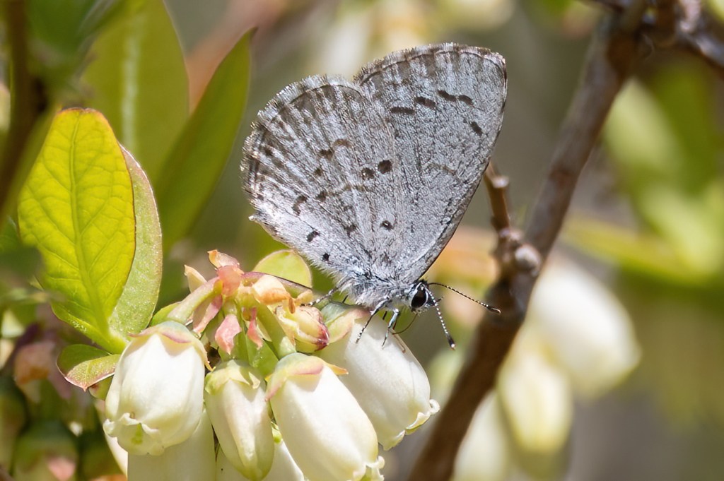 From there, we ended up driving down to the area we were in last year. This year was a bit different from a butterfly species perspective. Last year, I had a White-M hairstreak. This year there weren’t any in this area but one was seen in the previously mentioned, incorrect area. There were several Azures here though, and a Henry’s Elfin which is always fun.