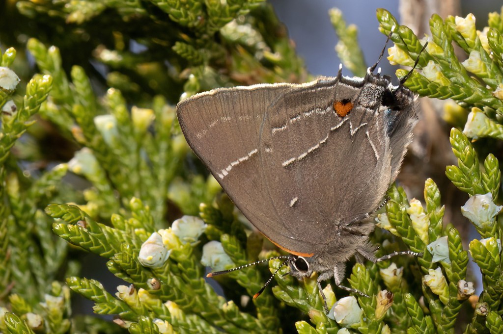 I was also lucky enough to find a very fresh White-M Hairstreak on one of the cedars.