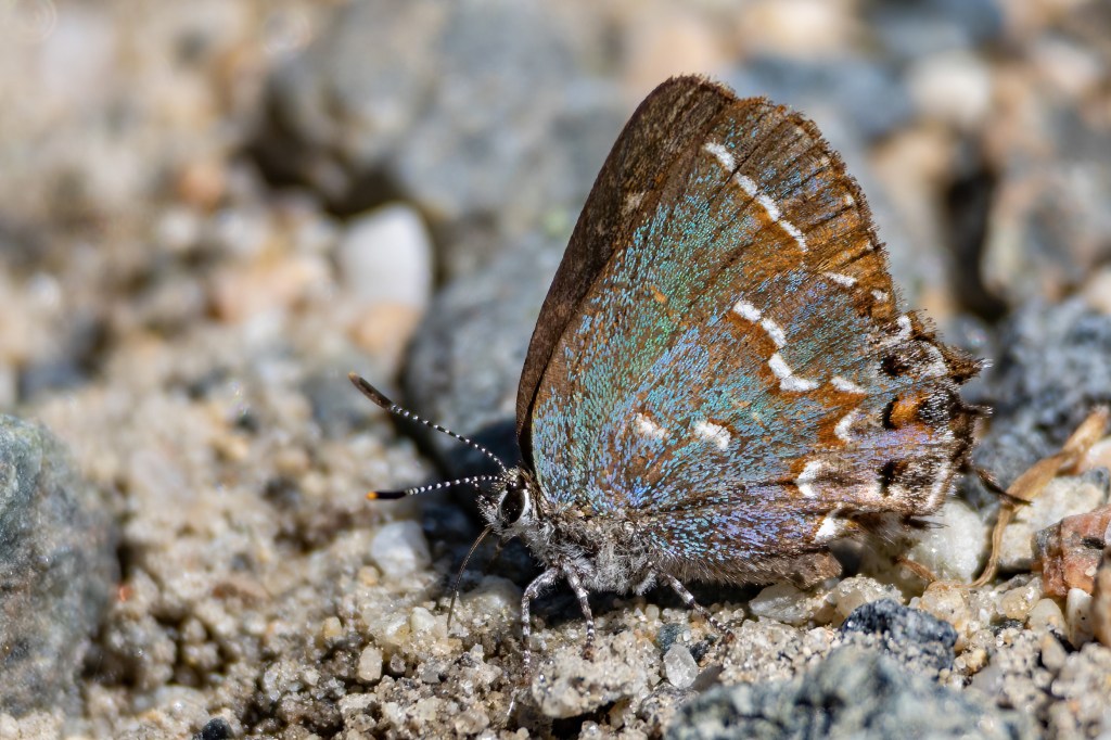 We were joined by friends after just a little while and began searching all of the area for whatever we could find. We found 2 Black Swallowtails (photo above), a couple Eastern Tiger Swallowtails that never stopped flying, Many Juvenal’s Duskywings, a couple Pine Elfins, a couple Painted Ladys, a few American Ladys, a Gray Hairstreak, and what we counted to be more than 25 Juniper Hairstreaks.