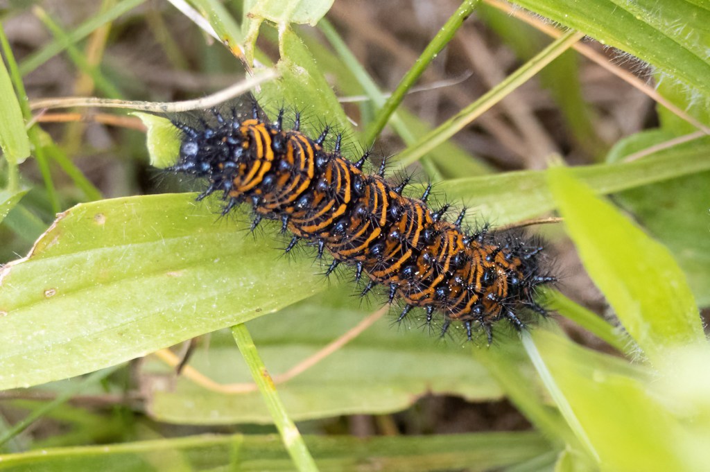 We were able to get a good lay of the land and ended up with several species seen in the end. We saw: Little Wood Satyrs, American Coppers, Silvery Blues, Hobomok Skippers (unexpected), Zabulon Skippers, Peck’s Skippers, one Tiger Swallowtail flyover, one Spring Azure, one Northern Cloudywing, one European Skipper, 2 Tawny-edged Skippers and a few dozen Baltimore Checkerspot caterpillars (photo above). A great day considering most of them weren’t flying much other than the Wood Satyrs.