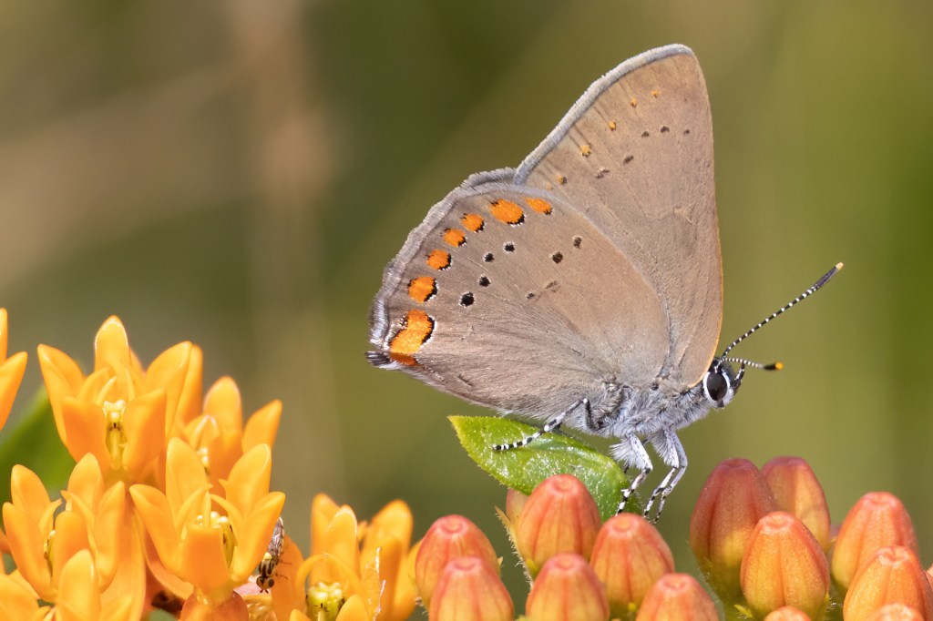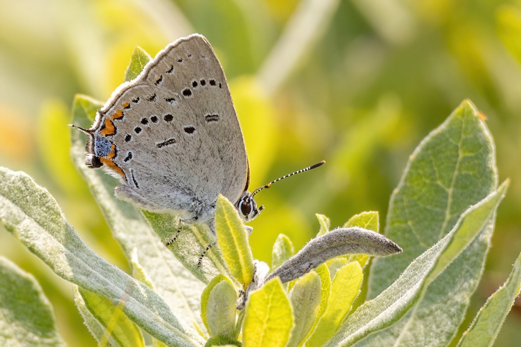 Our target species for the day was the Acadian Hairstreak. In Massachusetts, this is most likely the last place that these butterflies exist. Although we found none in 2024, they are relatively predictable to be in the same location every year. Having seen none last year, we were a bit concerned about this year, but were pretty quickly rewarded in our search with one individual, and it was a beauty!