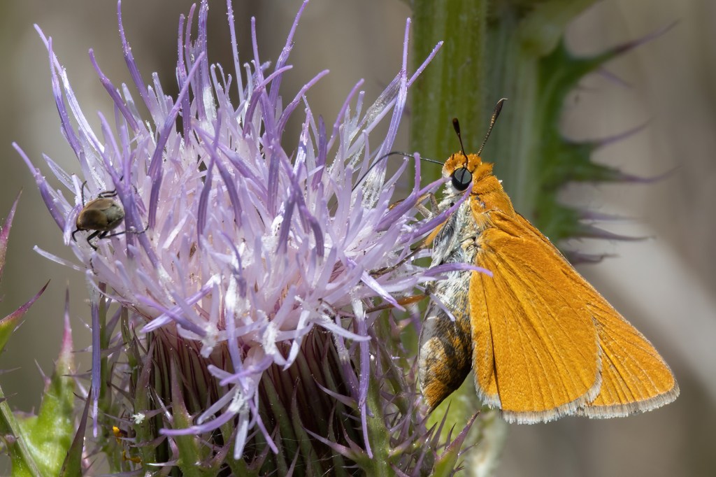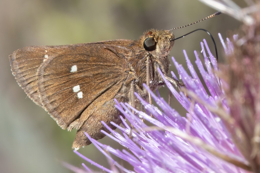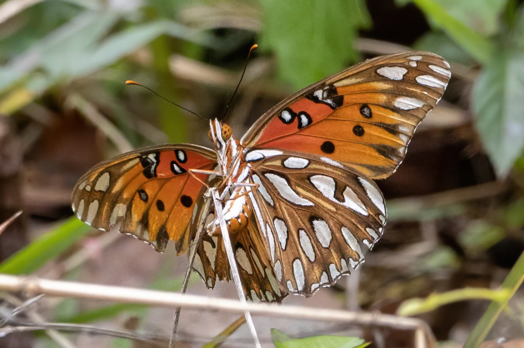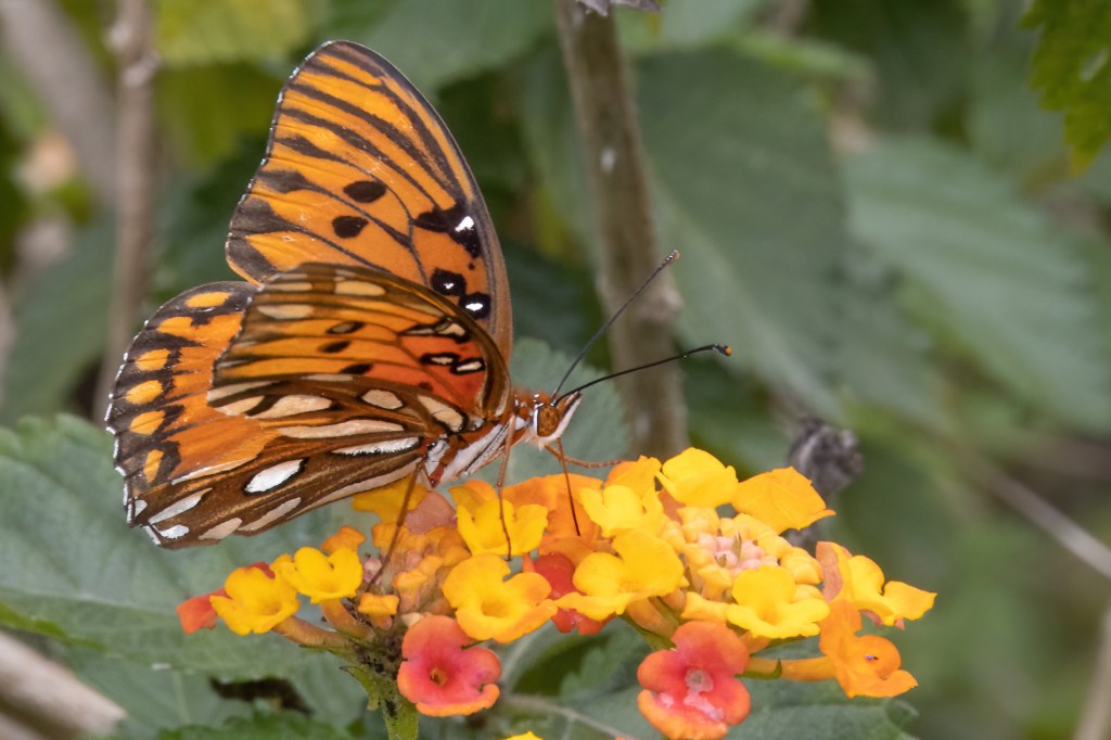 UPDATE: Looking for some kind of redeeming quality of this hotel, I walked around it several times at 4pm-5pm and found a few species. One, I only got a fuzzy phone pic of but iNaturalist is saying it is a Three-spotted Skipper! I tend to believe it as iNat is generally correct even with the smallest of detail in a photo, but I sure would have liked an actual in focus photo. I also saw two Gulf Fritillaries and 1 Horace’s Duskywing. Not bad for just walking the hotel parking lot.