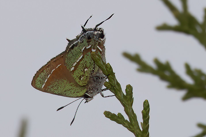 The day was forecast to be a hot one. Mid 90’s or so. So we started the day a little earlier in a neighborhood in Brandon that has a nice row of privet hedge at the beginning of it. Last year, it produced several hairstreak butterflies and this year didn’t disappoint! We found several Southern Oak Hairstreaks, two Fulvous Hairstreaks and a Monk Skipper. There was another small skipper that flew off quickly and we never got an ID on.
