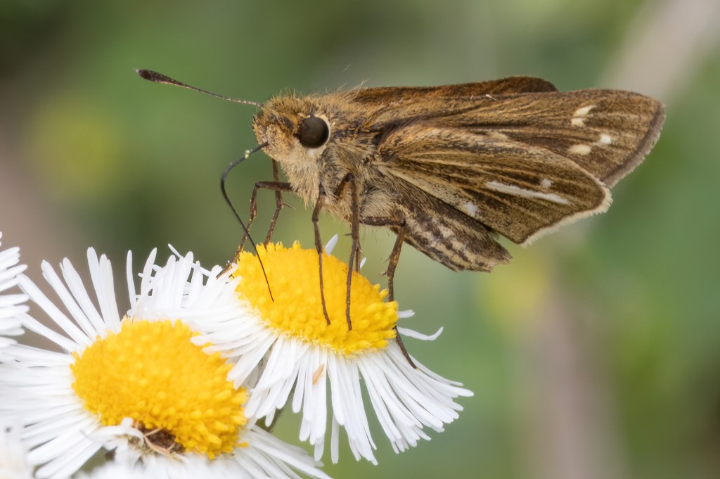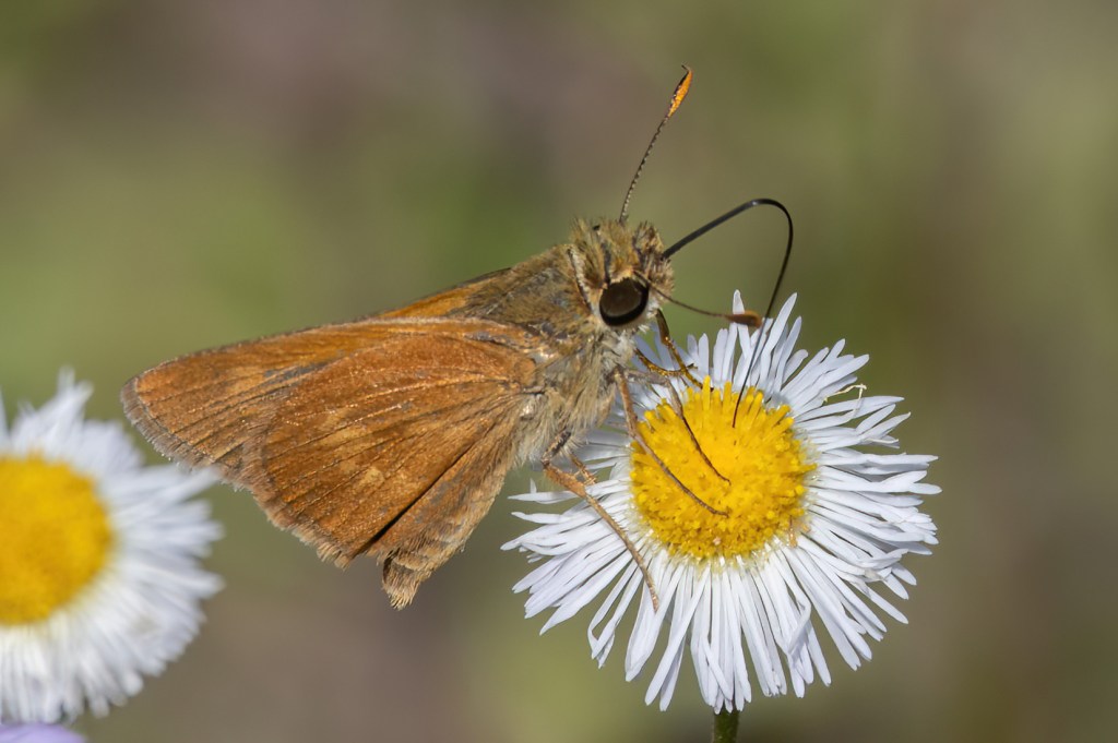 Striking out there, we decided to go to the Manatee Viewing Center in Apollo Beach. We figured if there aren’t any butterflies around, at least we will see a manatee. We barely got out of the parking lot and onto the property when we saw a Mangrove Skipper in the small group of flowers at the entrance! Finally! It wasn’t the BEST looking individual with one wing sort of tattered, but the other wing was nice so the photos I got of that side came out decently. There was also a Fiery Skipper here. As for manatees? None.